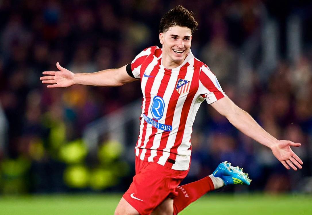北京时间4月9日,在欧冠1/4决赛首回合的比赛中,马德里竞技在第44分钟制造了库巴西的红牌之后,立马由胡利安-阿尔瓦雷斯利用任意球的机会破门得分,在上半场过后客场1-0领先于巴塞罗那。